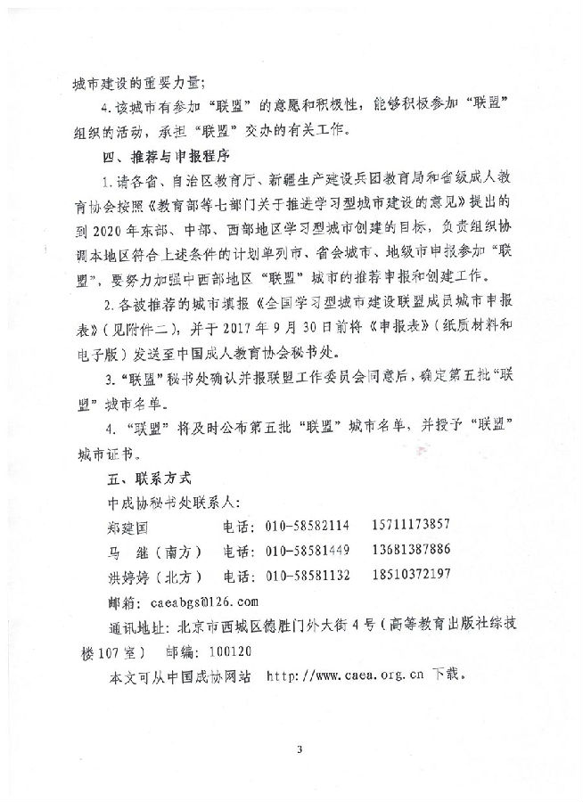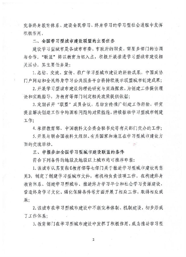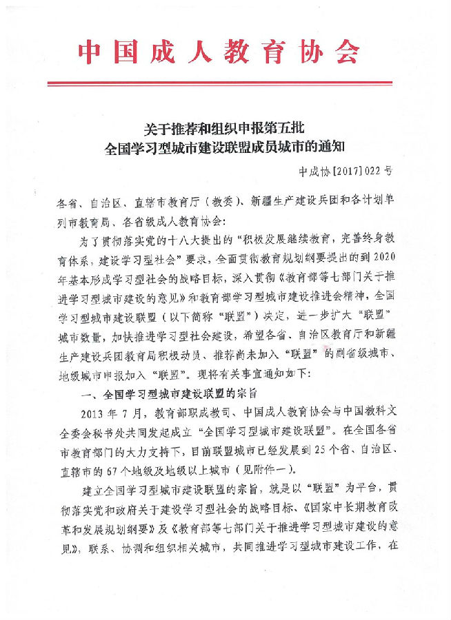 中国成人教育协会和全国学习型城市建设联盟秘书处意见