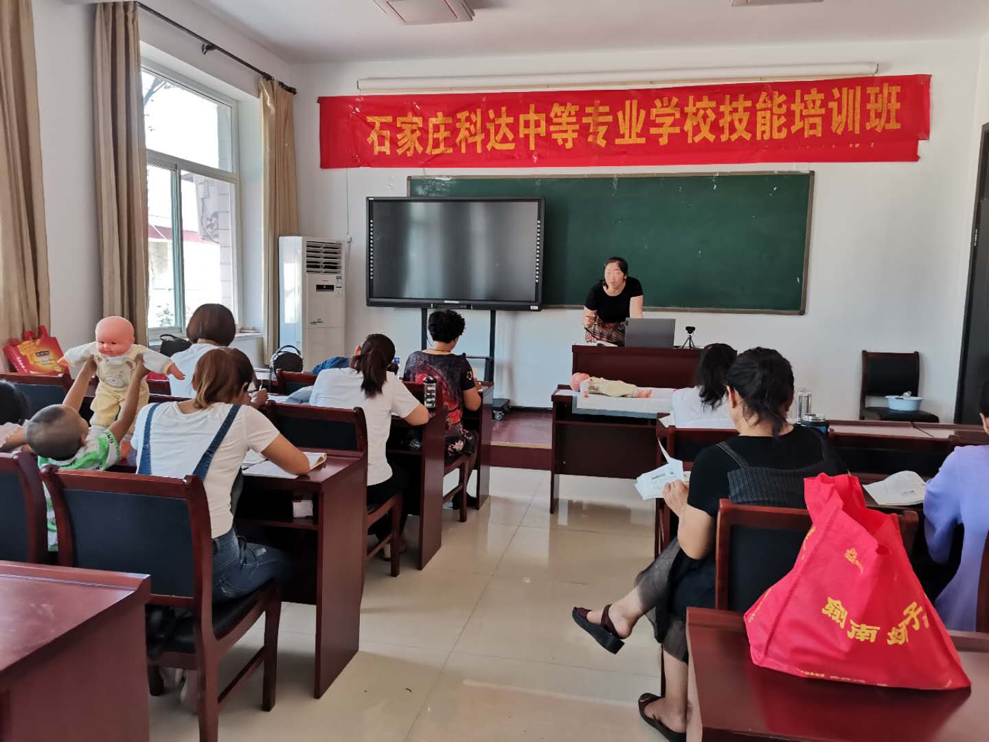 8月25日至9月8日,铜冶中心校联合石家庄科达中等专业学校在铜冶中心校举行了为期半个月的育婴员培训。培训内容主要包括婴幼儿穿衣、洗澡、喂奶等知识。