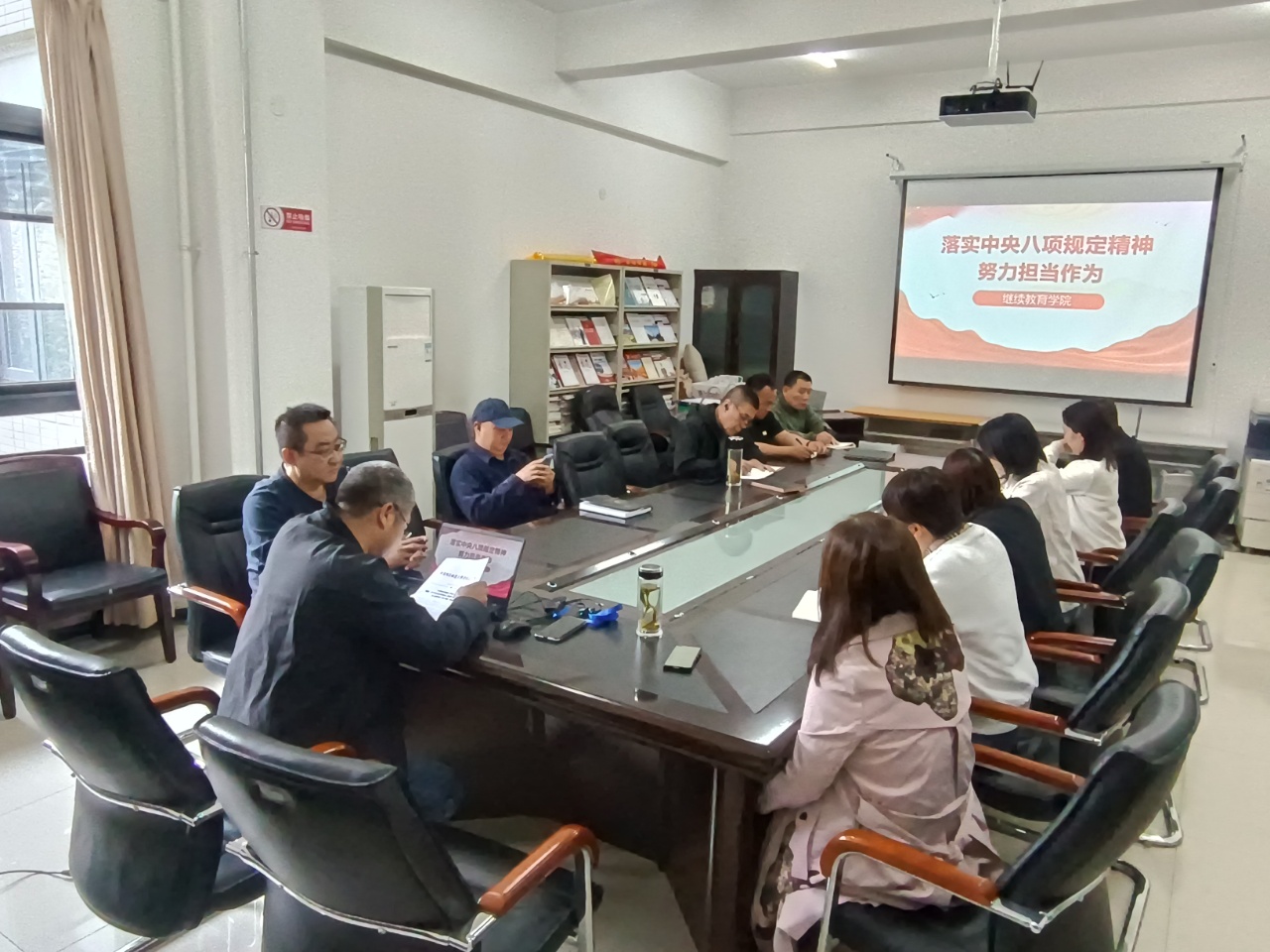 结合学院实际工作,他强调,为推进学院工作高质量发展,必须严格落实中央八项规定精神,既要充满积极性、创造性开展工作,又要规避风险,将作风建设与我院工作深度融合,在继续教育转型升级中坚持守正创新;要将制度约束与思想自觉有机结合, 构建“不敢腐、不能腐、不想腐”长效机制。