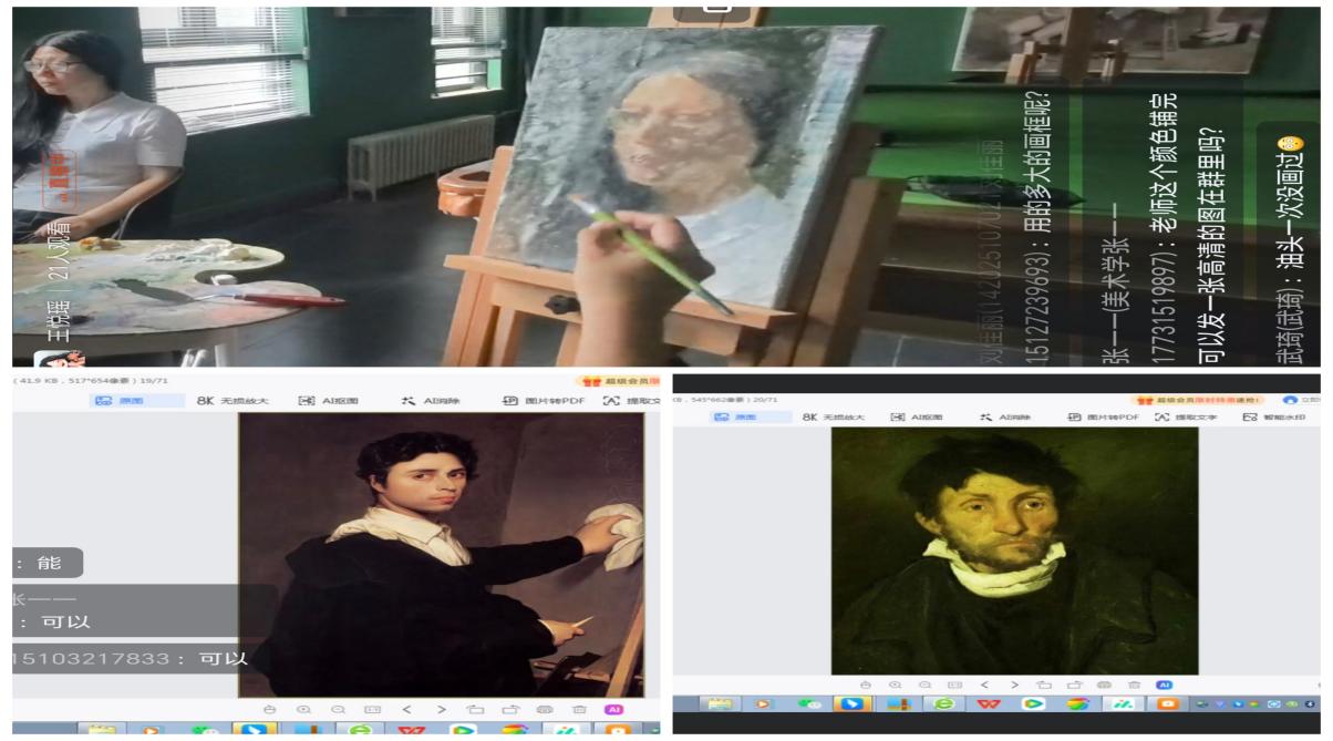 7月8日至12日,同院王凯老师接力授课,围绕油画头像与半身像展开专题教学。课程中,王老师以西方油画名作为切入点,娓娓道来西方美术发展脉络,生动解读历代画家的艺术特色与精神内核。随后,他现场示范油画人物从轻薄铺色到厚重塑造的全过程,并将多年美术教育实践中的深刻感悟融入教学细节,引导学生体悟技法背后的艺术逻辑。