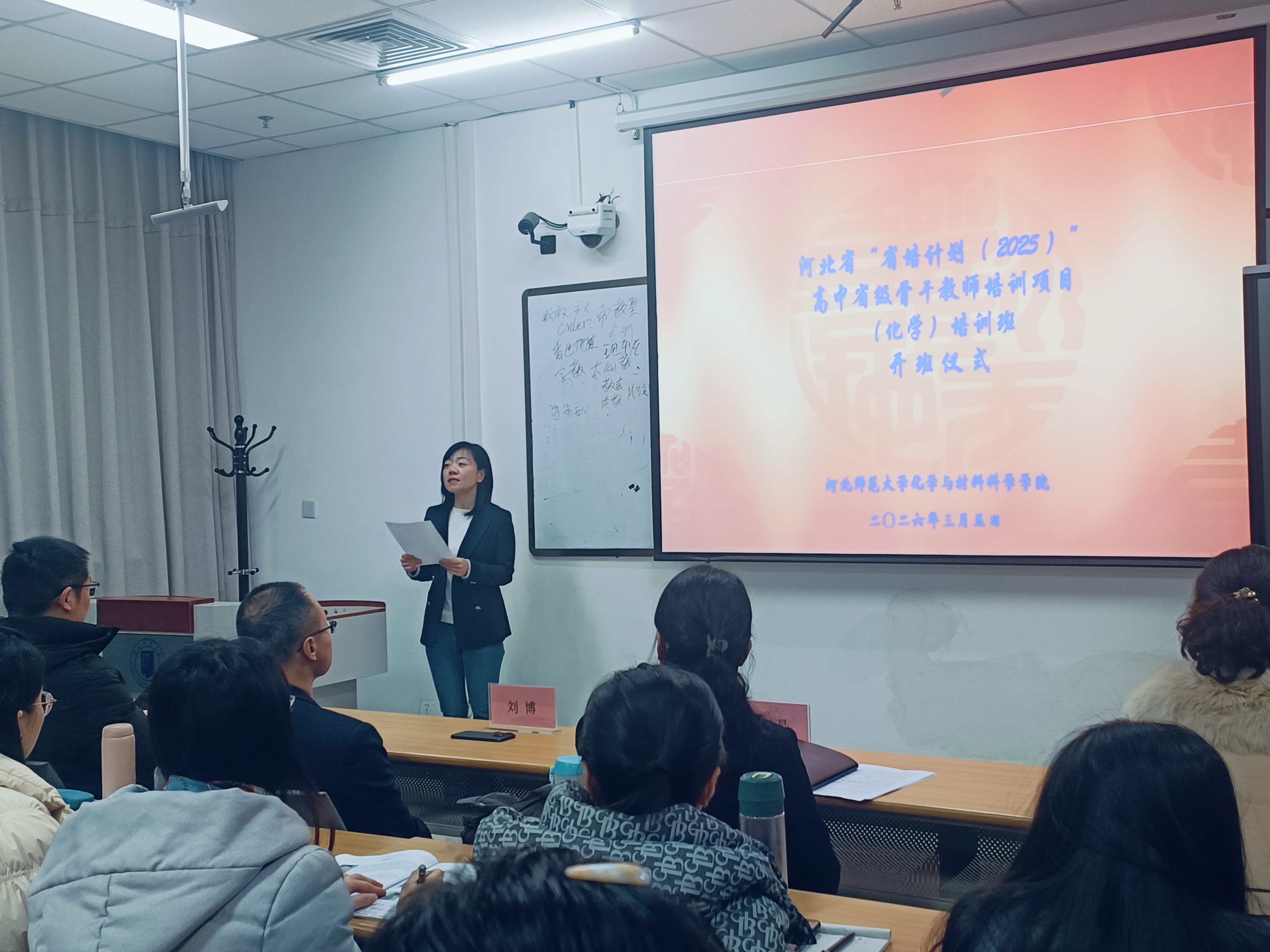 开班仪式最后,行政班主任郭倩强调了培训纪律和要求。初春里的美好相遇,也拉开了本次培训的精彩序幕。本次开班仪式标志着河北省“省培计划(2025)”高中省级骨干教师培训项目(化学)培训班正式启动,接下来百位学员将在河北师范大学展开为期20天的研修。