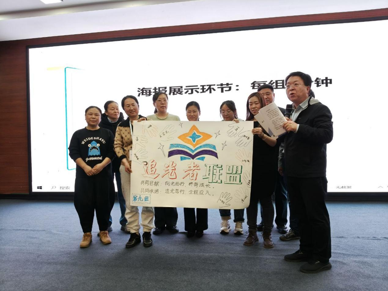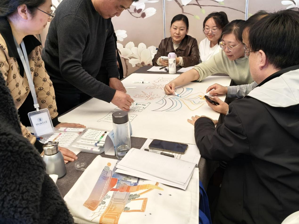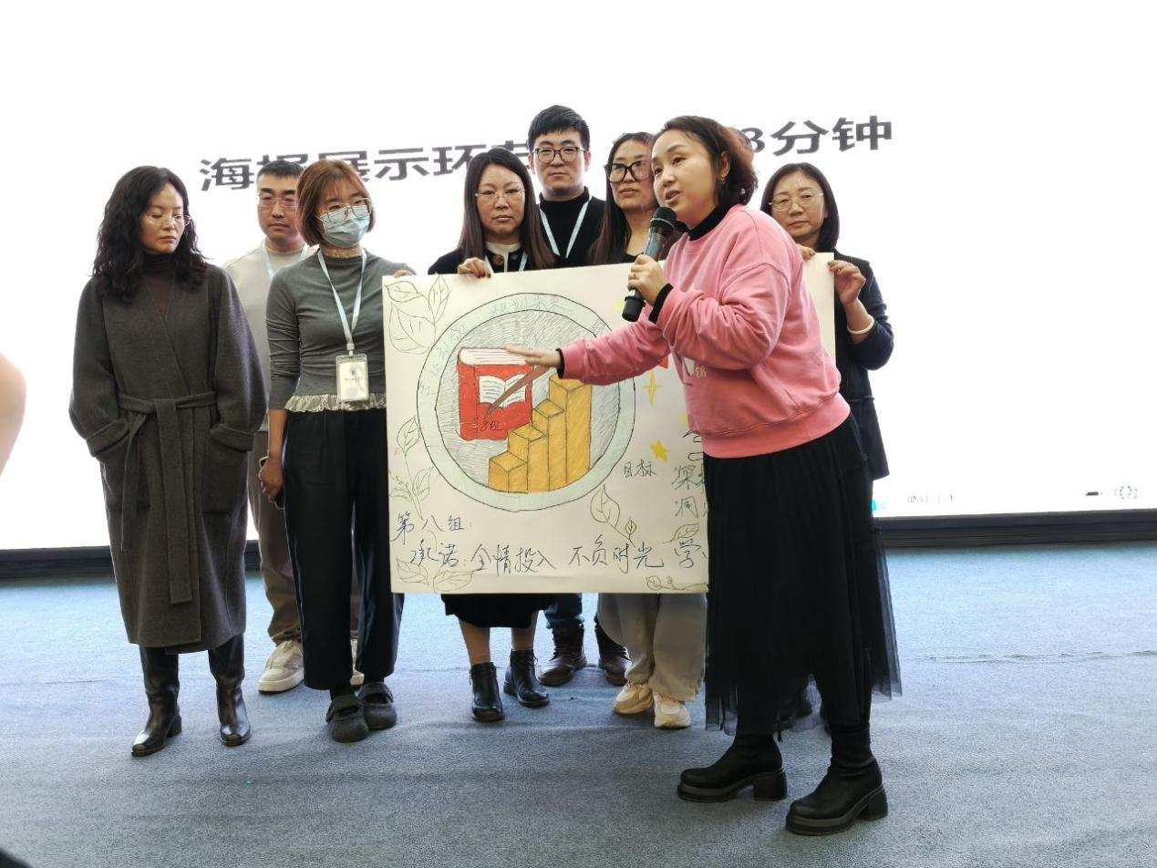开班典礼结束后,项目首席专家任国荣教授带领全体学员开展团队建设及成果分享活动。100名参训教师被分为10个学习小组,依次开展生涯名片介绍、组长选定、小组海报设计及展示等系列活动。活动中,学员们敞开心扉交流、凝心聚力协作,快速拉近了彼此距离,凝聚了学习共进的合力,各具创意的小组海报充分展现出学员们的团队协作能力与创新思维,为后续的培训学习营造了互帮互助、互学互鉴的良好氛围。