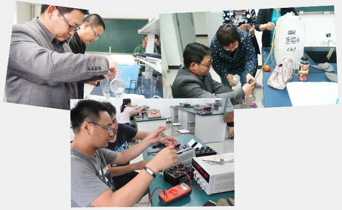 在积极利用教师培训实训基地,开展基于现场、基于真实课堂的教师培训的同时,不断丰富和完善实践教学环节,通过自我诊断、研讨互学、自我展示(说课、微型课比赛)等体验参与式教学活动,切实提高了实践教学效果。特别是物理、化学、生物等学科扎实推进实验教学培训,让学员亲自动手制作教具,体验实验过程,有效改变了学员依靠从书本上和网络中学到的实验知识,指导实验教学的状况。
